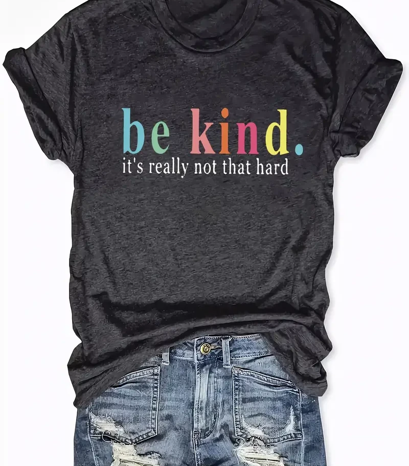 "Be Kind.It'S Really Not That Hard" Printed V-Neck T-Shirt, Casual Short-Sleeve Spring/ Summer Top for Women